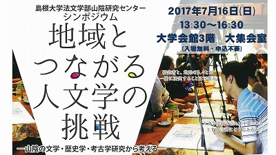 山陰研究センターでは、シンポジウム「地域とつながる人文学の挑戦―山陰の文学・歴史学・考古学研究から考える―」を7月16日(日) 島根大学 大学会館3階大集会室にて開催いたします。